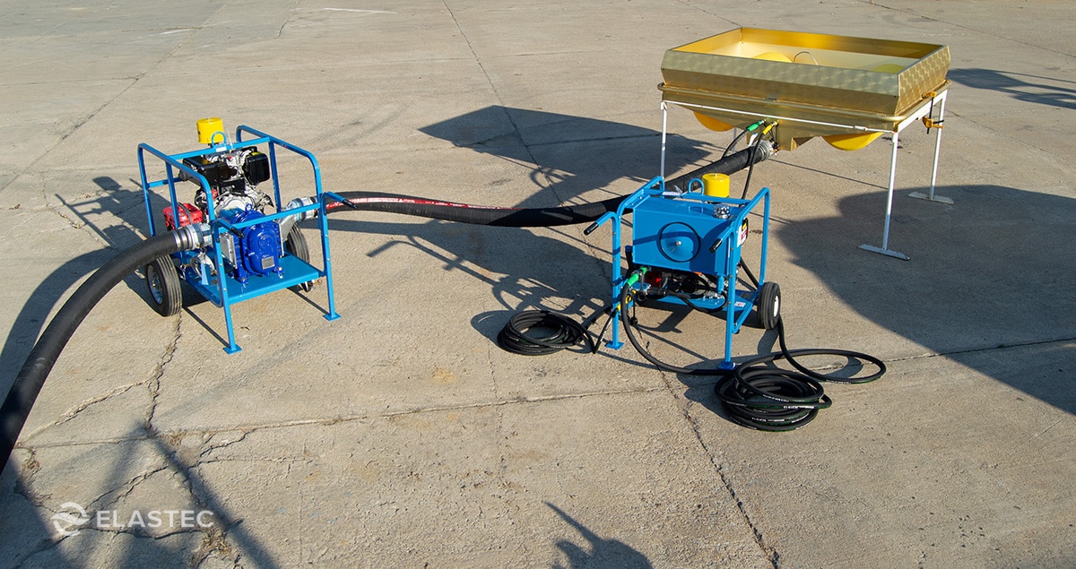 The ELASTEC D10 Diesel Hydraulic Power Unit is paired with the ELASTEC E150 submersible pump.
